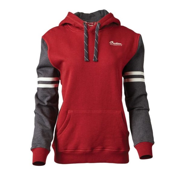 Women’s Pullover Hoodie Sweatshirt with Contrast Sleeve, Gray/Red